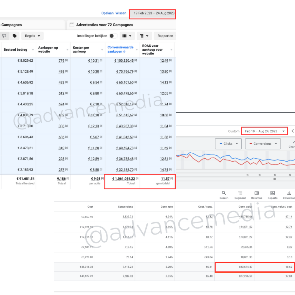 In 6 maanden tijd hebben we een omzet van bijna 2 miljoen euro gerealiseerd via Meta en Google ads.
